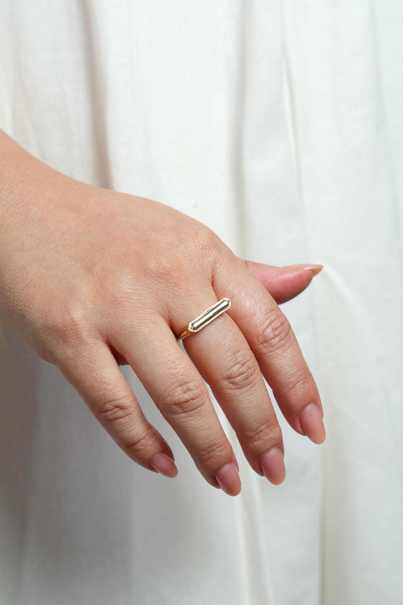 Mais que um acessório, o Anel Audrey é a expressão da elegância atemporal em sua forma mais minimalista. Com design reto na parte superior e acabamento em mix de banho, ele une sofisticação e modernidade em um estilo único, transmitindo força e delicadeza em cada detalhe.