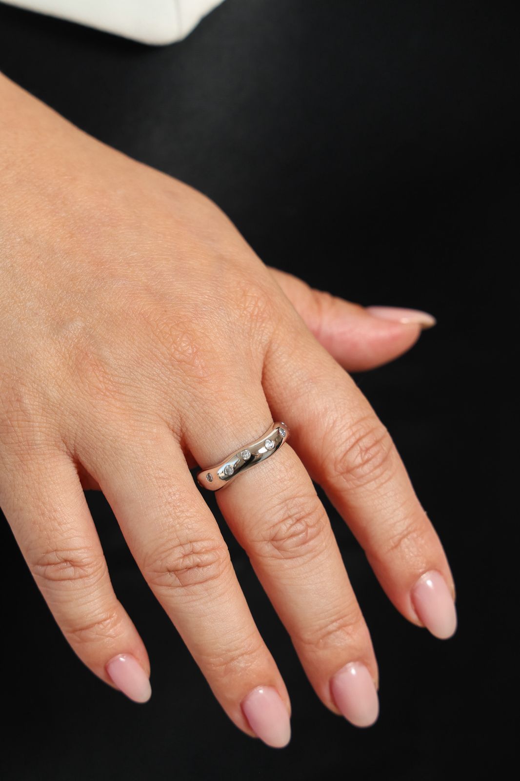O Anel Hillary traz um design fluido e delicadamente ondulado, pensado para mulheres que apreciam peças minimalistas com presença. Seus pontos de luz aplicados em sequência criam um brilho suave e marcante, valorizando a peça de forma refinada.