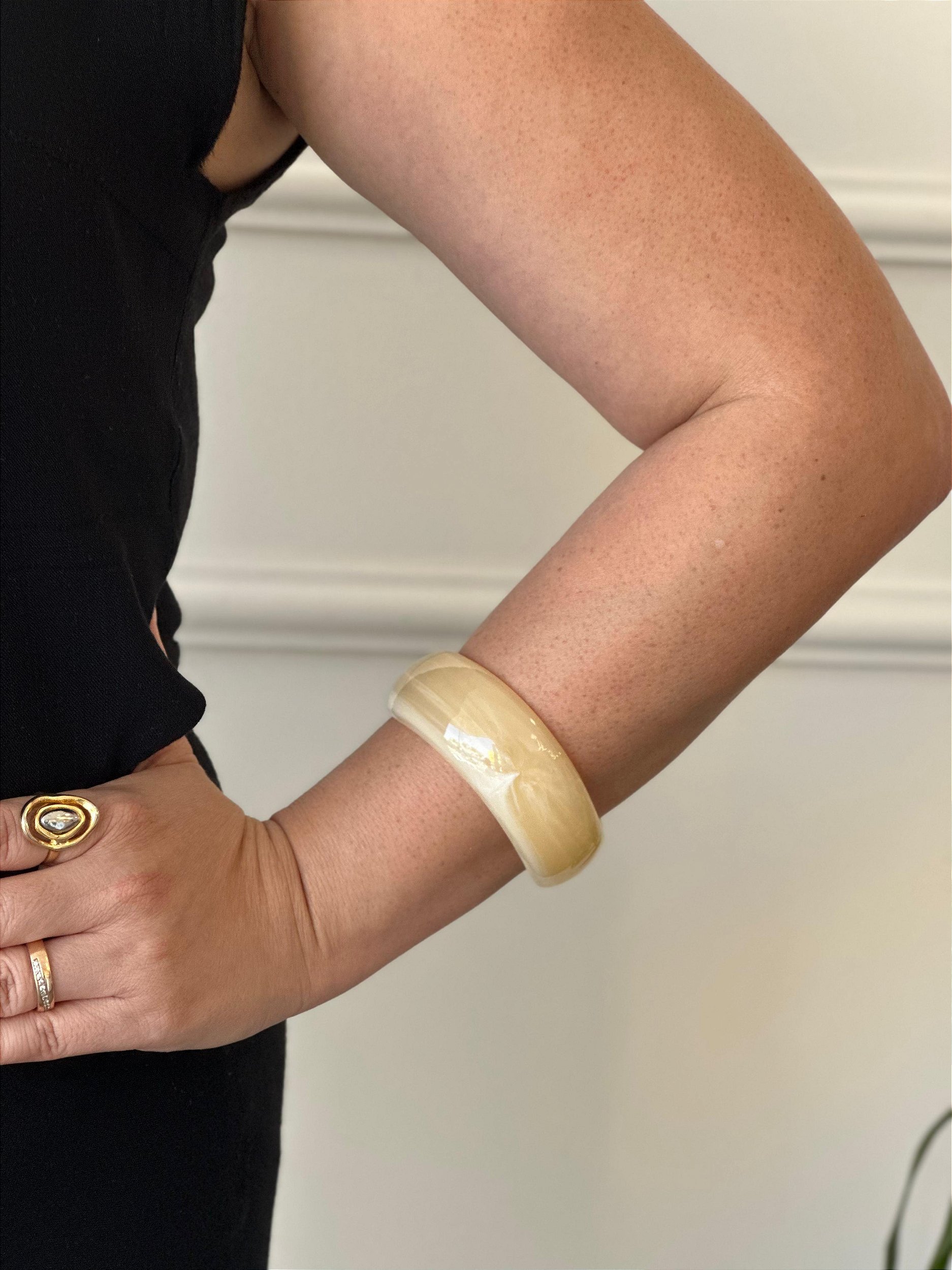 Mais que um acessório, o Bracelete Solenne é a expressão de elegância e delicadeza em cada curva. Produzido em resina com acabamento levemente marmorizado, ele traduz sofisticação atemporal e um charme discreto. Seu formato curvo transmite leveza e harmonia, tornando a peça marcante e cheia de personalidade.