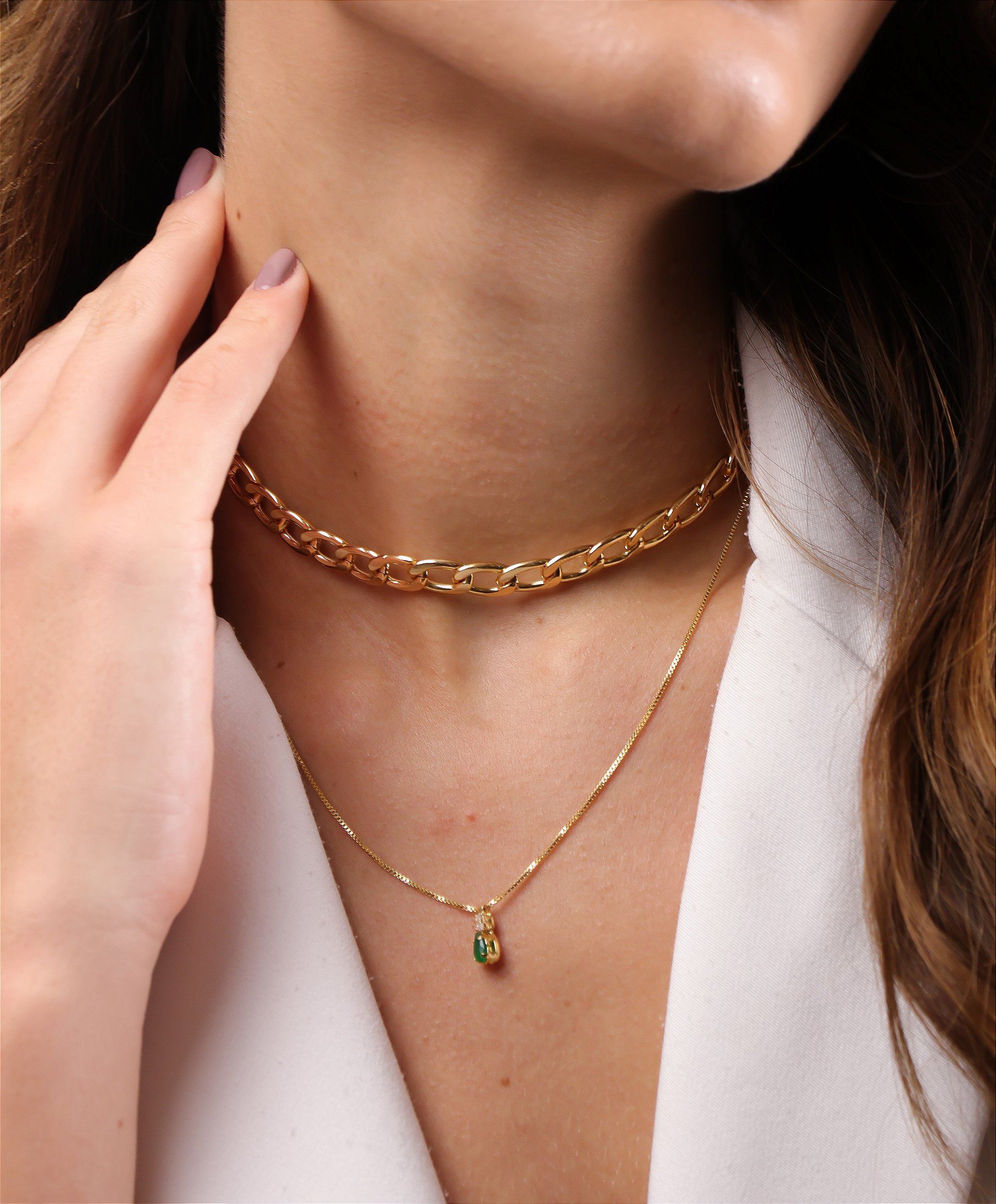 A correntaria é uma tendência incrível e traz destaque a composição. Elas podem ser as protagosnistas da sua produção, imagine um jantar com seu amor e você marabilhosa com este colar Nayra.
