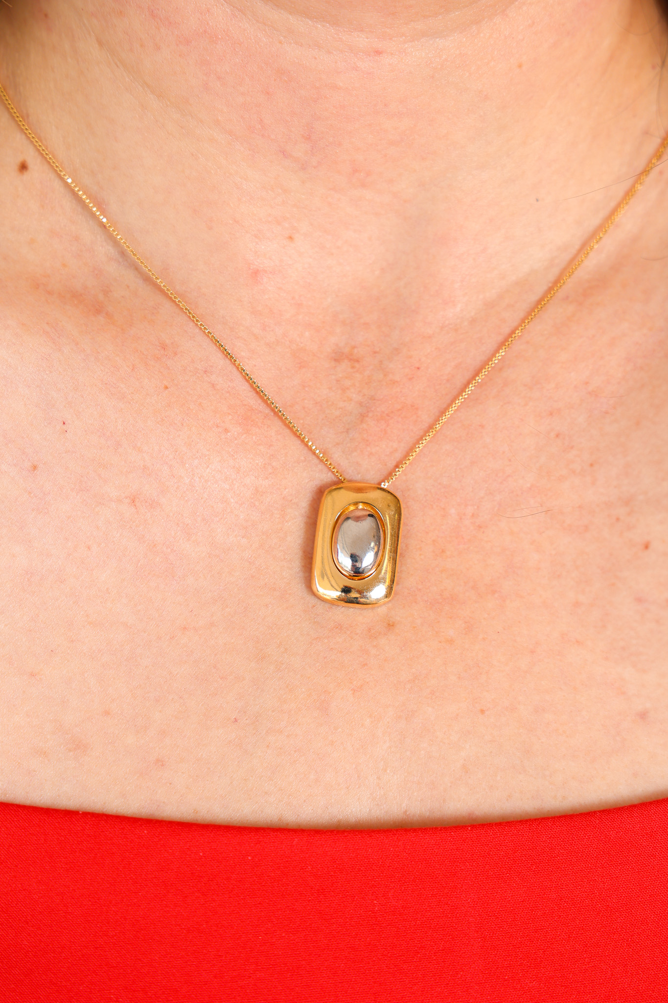 O Colar Rose une o charme do design vintage retrô a uma estética contemporânea e sofisticada. Seu pingente de formato orgânico, com acabamento polido e brilho suave, cria um ponto de destaque elegante que valoriza o colo com delicadeza e personalidade.