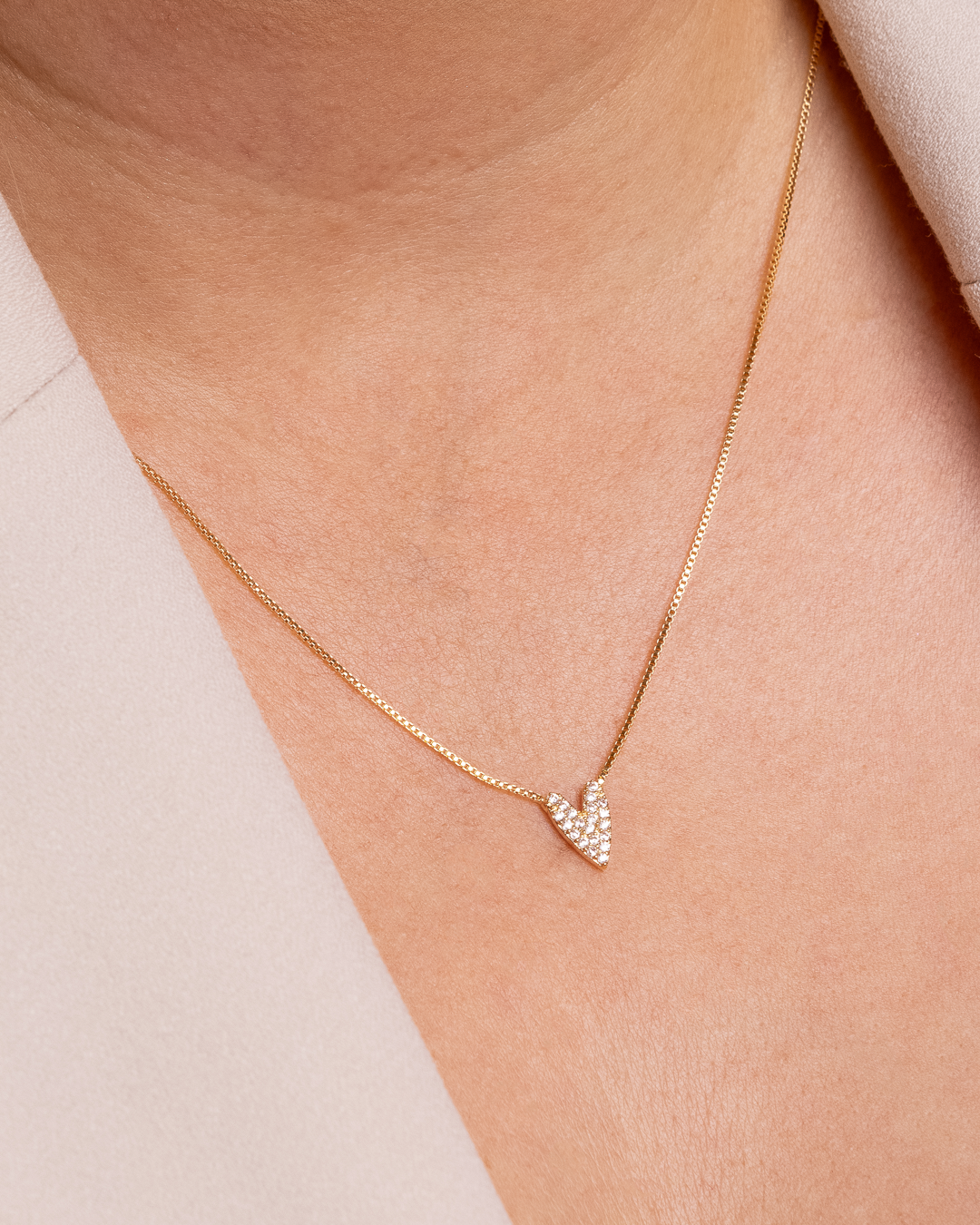 Adquira agora o incrível colar Vivian feito de coração cravejado em zirconias e transforme seu look em um verdadeiro arraso! Com seu design moderno e sofisticado, essa peça é perfeita para adicionar um toque de estilo e elegância a qualquer visual. Não perca tempo, garanta já o seu e se destaque com muito glamour e bom gosto!